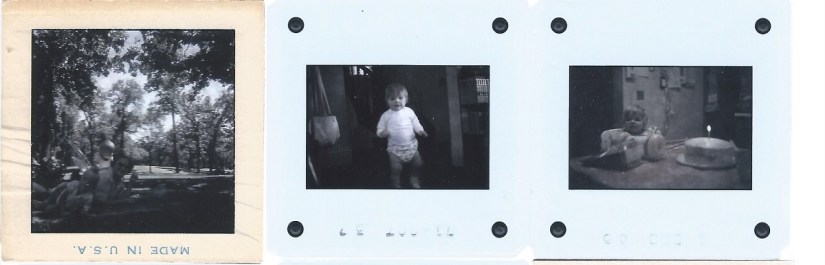 Left–My mom and 2 kids. Not sure who or when. Middle–Me at about 1+ years old. Right–My first birthday, October 1971