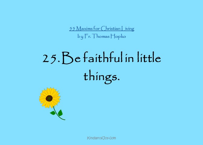 Be faithful in little things. Jesus said it. “He who is faithful in little, inherits much and is put over much. And those that are not faithful in little, lose the little they have.” In St. Luke’s Gospel, the Lord even said: “lose the little, they think that they have.” Fidelity in small, ordinary things.