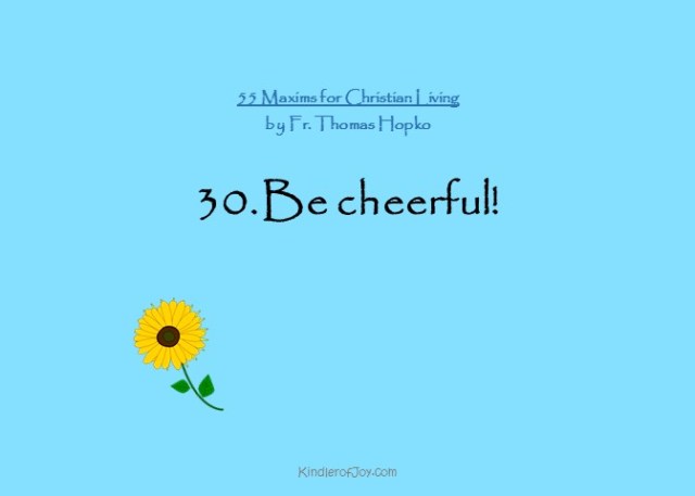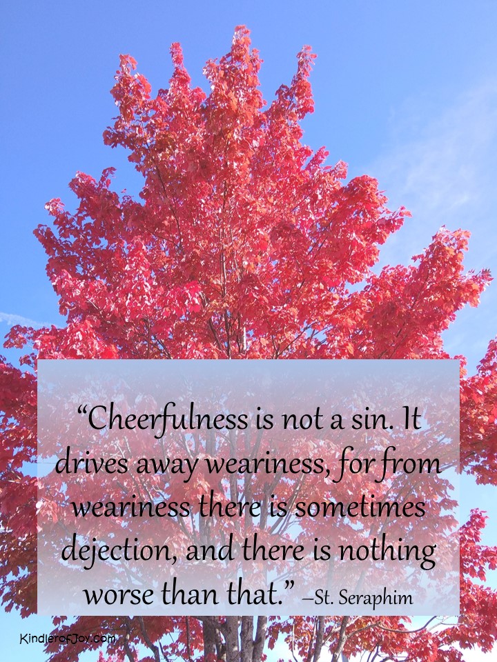 I love this quote by St. Seraphim about cheerfulness. Fr. Thomas says, “act cheerful, even if you don’t feel like it.” This is pretty difficult to do. This is the part I struggle with. It is hard to “act cheerful” when you don’t feel like it.