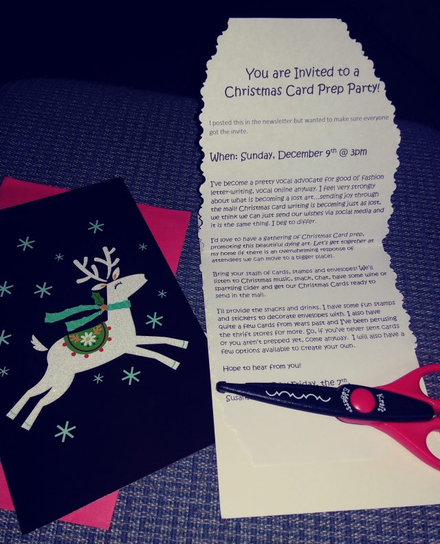 I will also have envelope decorating supplies as well as lots of extra cards from years past and my thrifting. I might even put out supplies for people to make their own cards.