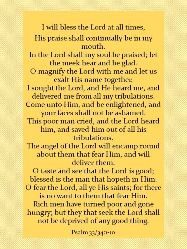 In the Lord shall my soul be praised, let the meek hear and be glad.
