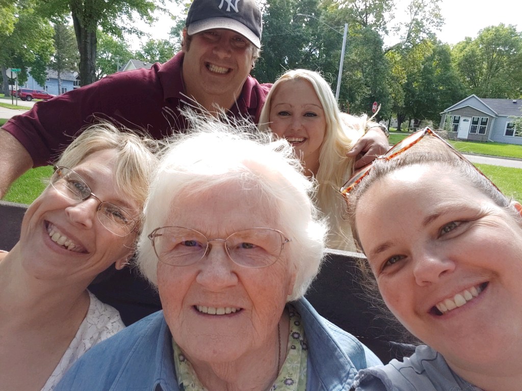 Clockwise from front center: my mom-Faith, my sister-Shari, my niece’s husband – Adam, my niece – Alexis, and me.