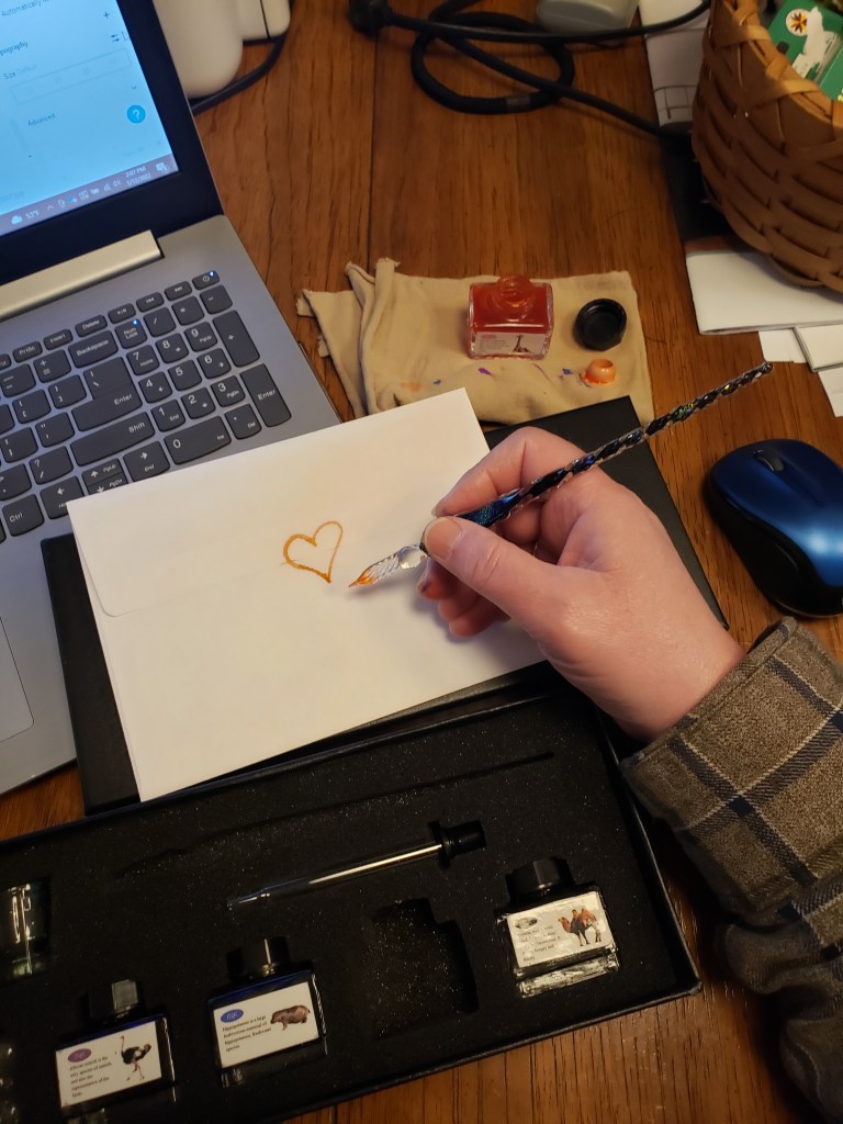 It has been a long time since I have talked about the beautiful act of letter writing. I haven’t been very good at letter writing lately but it is time to get back into the swing of things! I got a beautiful glass dipping ink pen from my daughter for Christmas. It is fun to use. I need to get used to it. It is unique and beautiful.