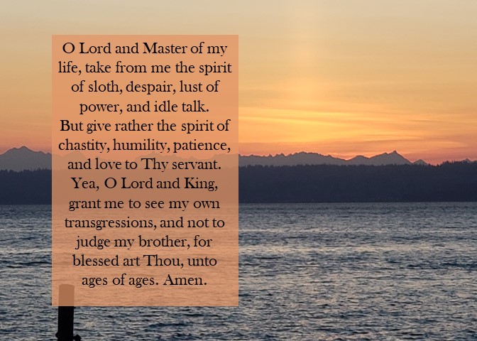 In this very same meditation on Friday, Fr. Steven Belonik also mentions the prayer of St. Ephrem, particularly the part I mention above: Grant me to see my own transgressions and not to judge my brother. Of this he says, “If I truly felt this prayer, I would not judge my brothers and sisters readily. If I had the spirit of humility, I would not need to build myself up by tearing them down. My misplaced pride persuades me that I will appear superior if others around me appear inferior.”