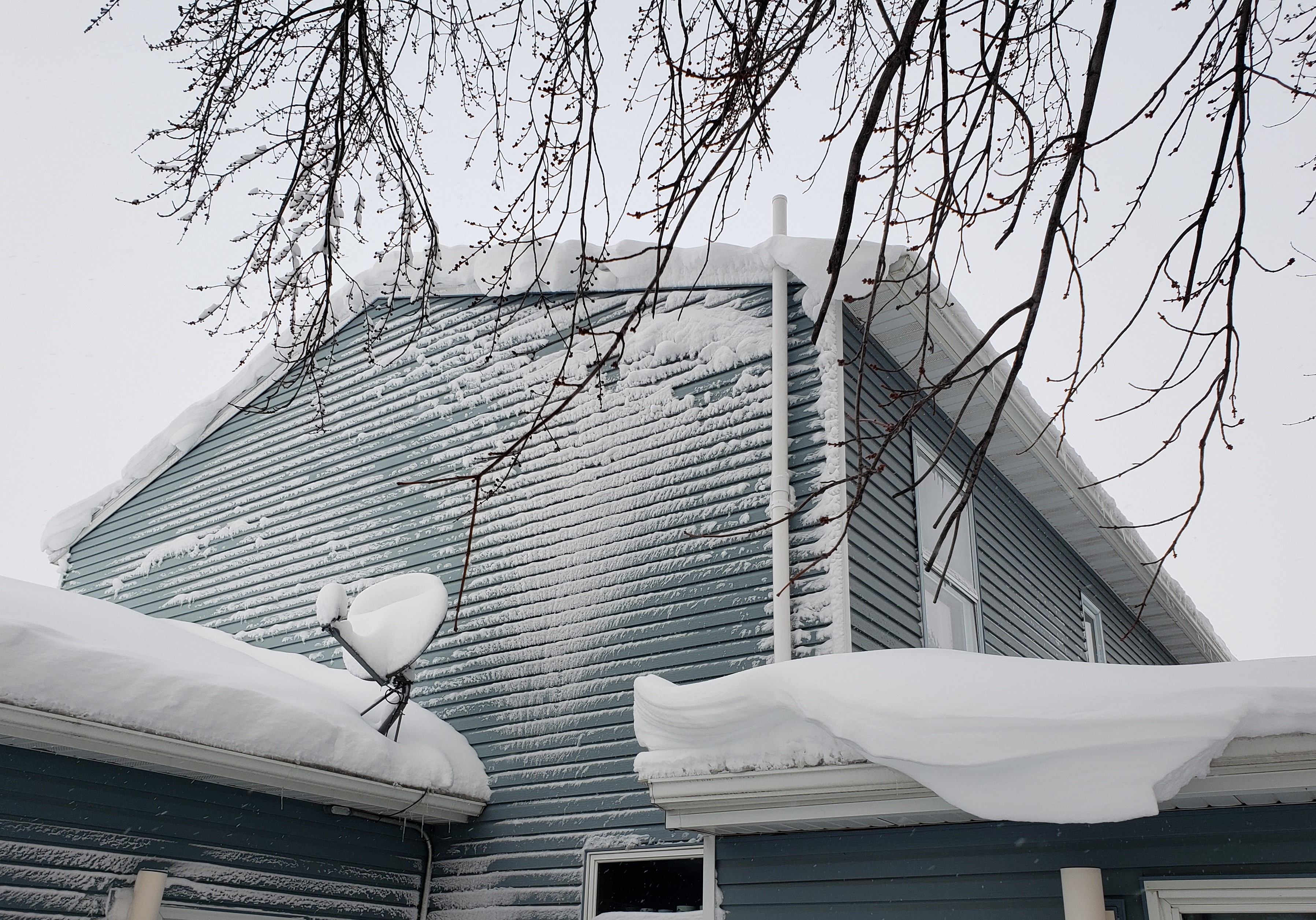 The wind has been so strong that it has created some pretty sculptures on the tops of the houses in our neighborhood, as well as our own. It’s been fun to watch.